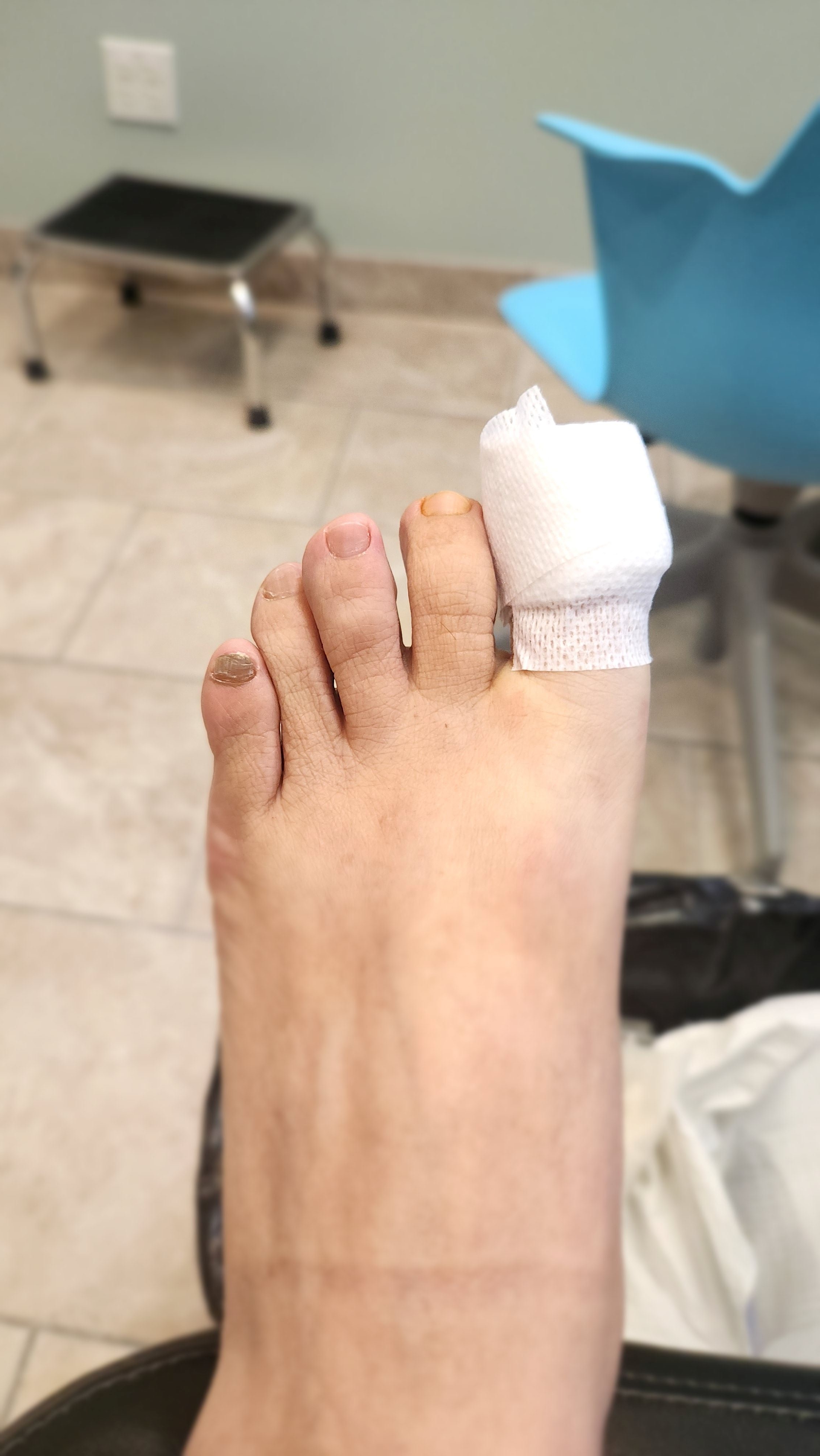 然后,小哥还帮我把厚厚的死甲部分剪掉,消毒,包扎好,整个过程大概20分钟,就好了。