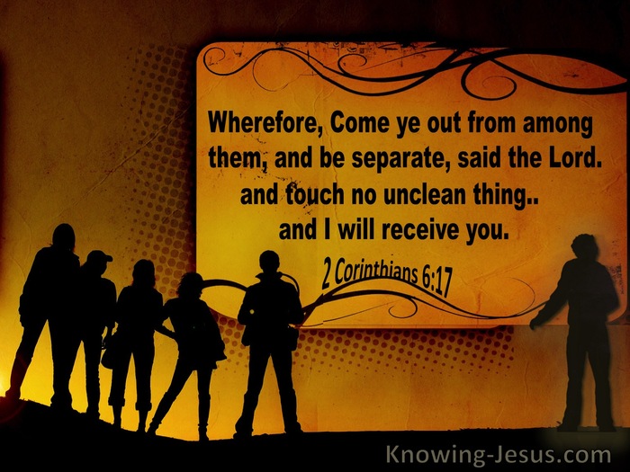 哥林多后书6:17-18—— 17又说:“你们务要从他们中间出来,与他们分别,不要沾不洁净的物,我就收纳你们。18我要作你们的父,你们要作我的儿女。”这是全能的主说的。
