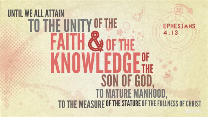 以弗所书4:13-14—— 13直等到我们众人在真道上同归于一,认识神的儿子,得以长大成人,满有基督长成的身量,14使我们不再作小孩子,中了人的诡计和欺骗的法术,被一切异教之风摇动,飘来飘去,就随从各样的异端。