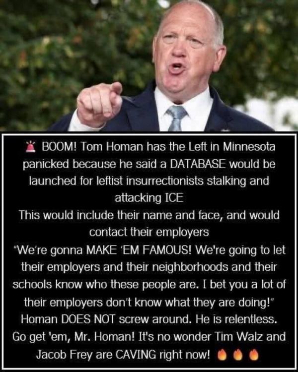 国土安全部已经在追踪攻击或阻挠警官的暴力煽动者(你知道,重罪)。 汤姆·霍曼(Tom Homan)通过数据库推动让这些干扰者“出名”——名字、面孔、通知雇主。