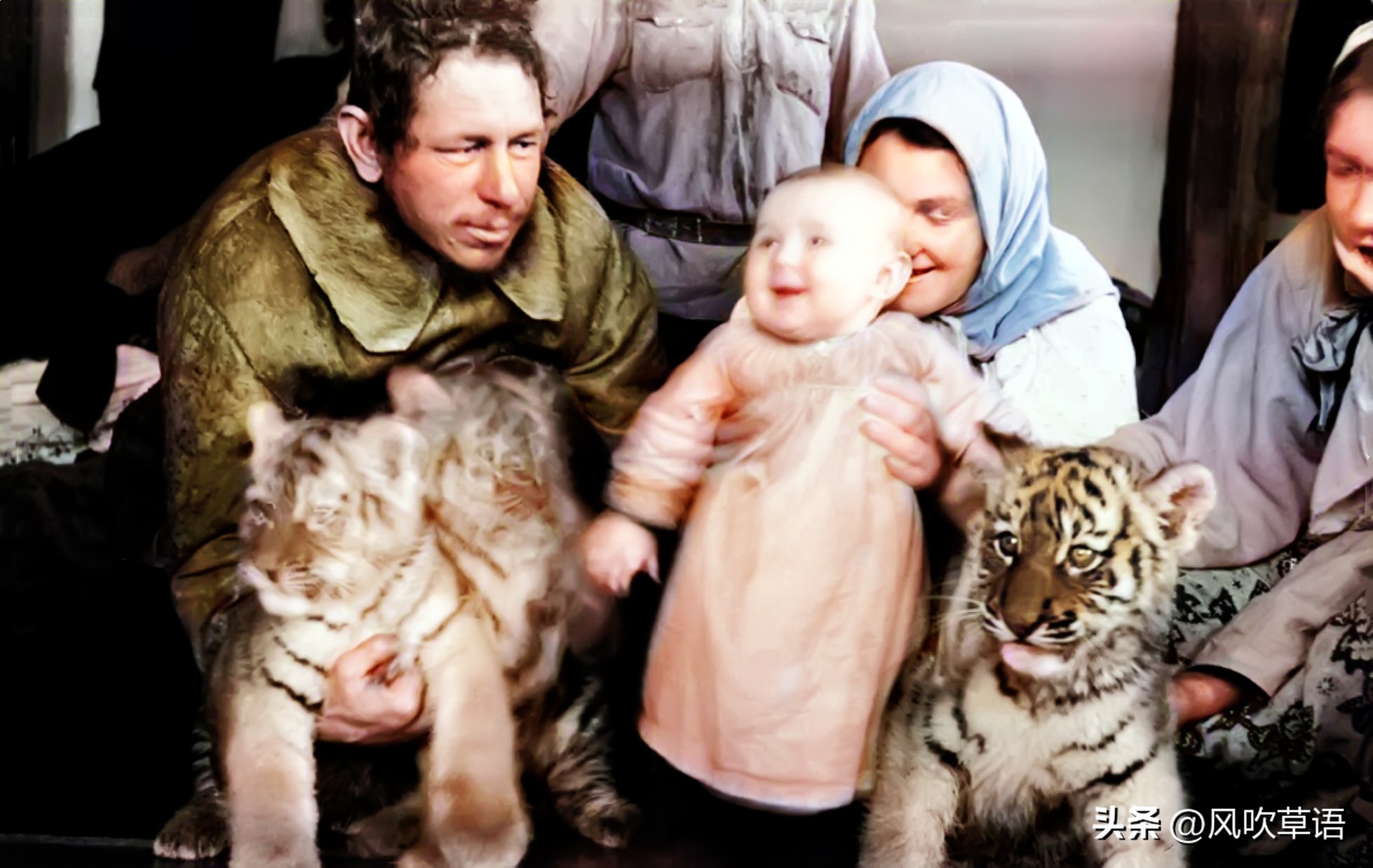 一家人和宠物的合影,毕竟是战斗民族,他们所饲养的宠物不是猫狗,而是东北虎,而且一养就是两只,不得不让人佩服。1945年,苏联红军进入东北地区,生活在这里的村民开始再次迁徙,1950年,这座村庄基本被荒废。