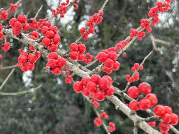 一树冬青红了一两个月,今日格外娇艳,粒粒红果,宛如宝石,熠熠发光,带着点点湿意。想起了那古老的诗词,“来日绮窗前,寒梅著花未?”故乡这几天也下雪了,北方天寒,无法栽种梅花。姐姐,哥哥,你们都好吗?还记得小时候我们一起玩雪吗?