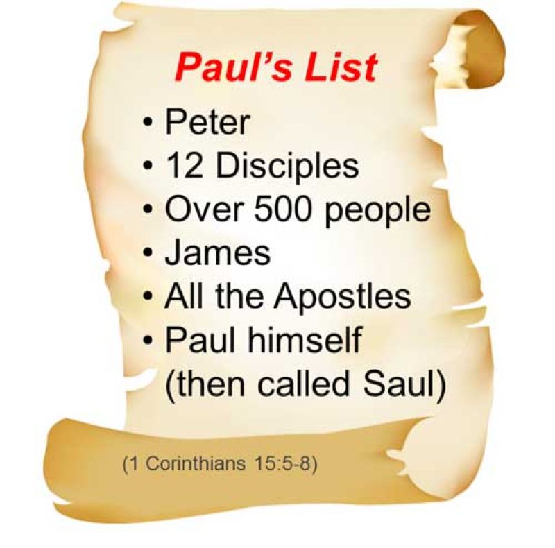 哥林多前书第15章中保罗列出的见证人名单,并不是为了偏袒耶稣复活的说法而特意挑选的,乃是基于历史事实。实际上,名单中的一部分人对耶稣的复活原本是不利的见证。