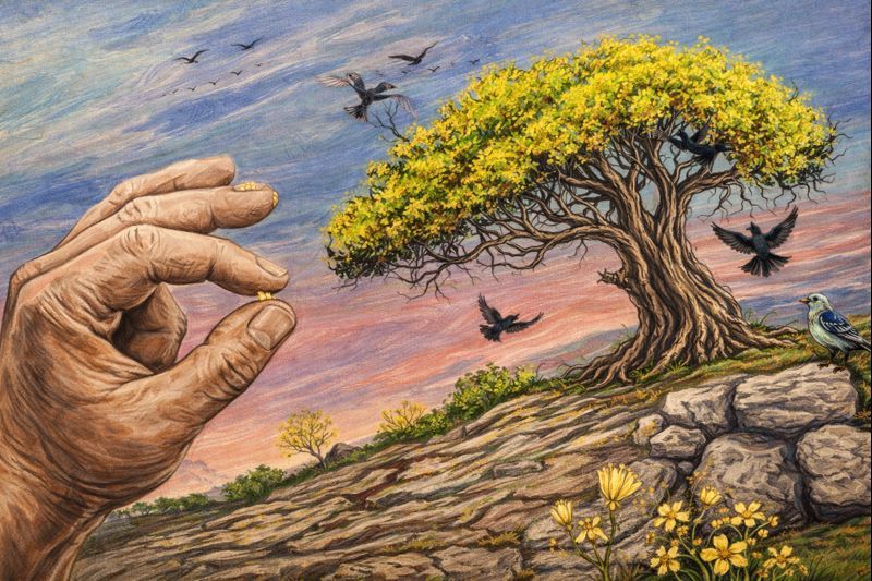 马太福音13:31-33—— 31祂又设个比喻对他们说:“天国好像一粒芥菜种,有人拿去种在田里。32这原是百种里最小的,等到长起来,却比各样的菜都大,且成了树,天上的飞鸟来宿在它的枝上。”33祂又对他们讲个比喻说:“天国好像面酵,有妇人拿来,藏在三斗面里,直等全团都发起来。”