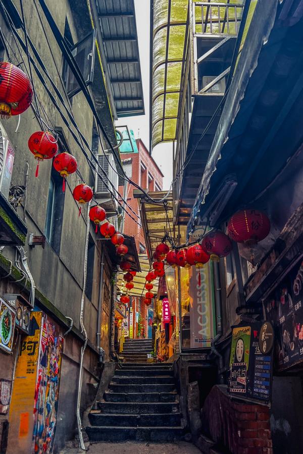台湾台北九份老街,雨巷里的红灯笼:照亮一段旧时光