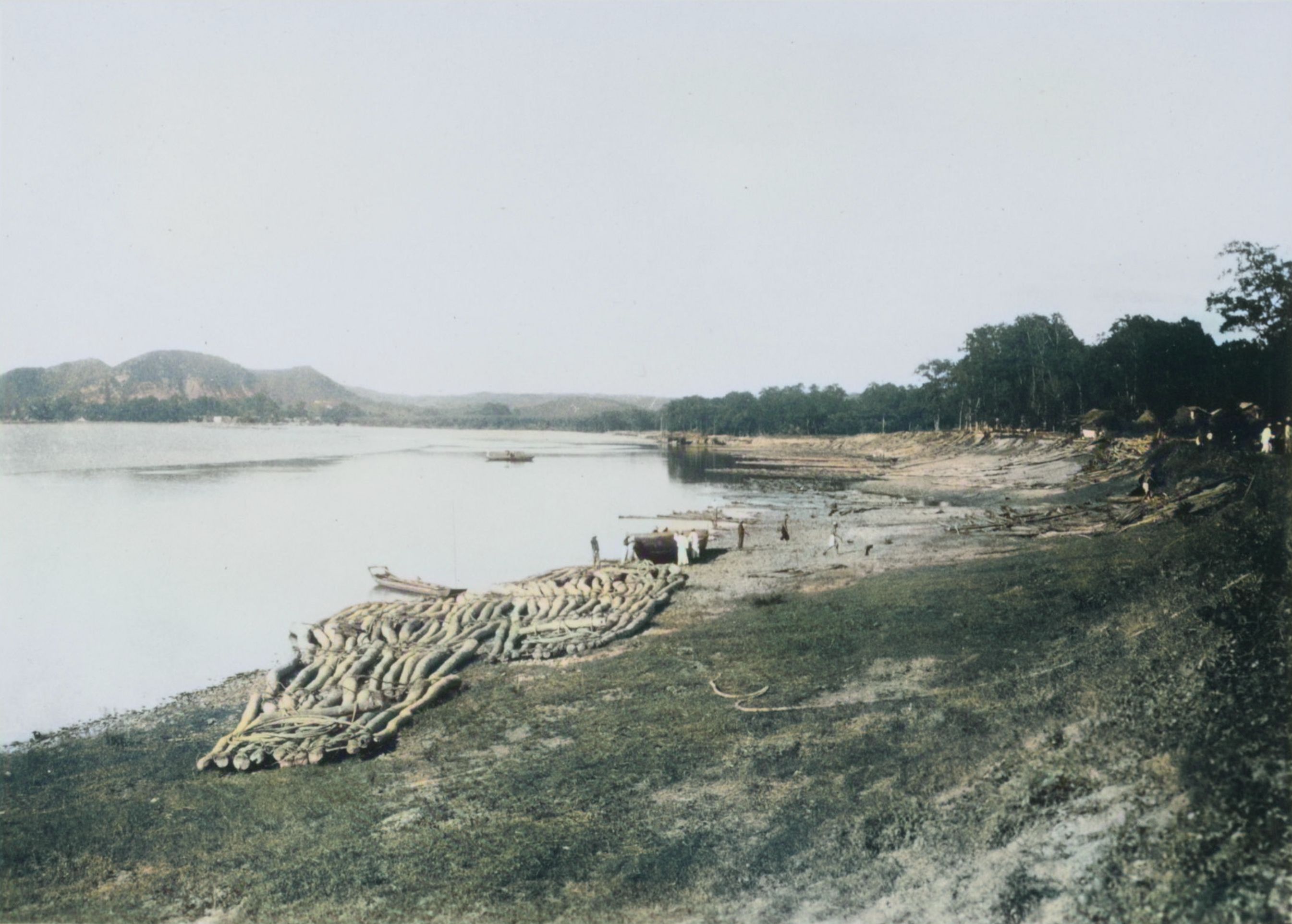太平县穰溪的一处渡口,不远处有几个人不知道是不是正在等待渡船,渡江的工具就是十分简陋的竹筏。