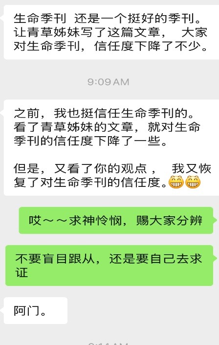 三、回应“陈鸽论‘生命季刊’:我为华人教会哀叹”