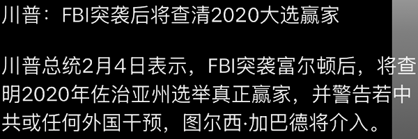 我们的主权将会收复。我们的安全将会恢复。司法的天平将重新平衡。司法部和我们政府被恶意、暴力且不公正地武器化的现象将结束。
