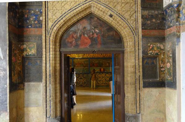 教堂旁有博物馆和图书馆,保存丰富的手稿、文物和教会历史资料。旺克大教堂的存在与当地亚美尼亚人的历史紧密相关:17世纪初,波斯萨法维王朝的沙阿阿拔斯一世(Shah Abbas I)为打造新的首都伊斯法罕,曾将大批亚美尼亚人从原住地古约尔法强制迁移到伊朗。这些人包括工艺师、商人和社区群体。新迁入的亚美尼亚基督徒在伊斯法罕南岸河对岸建立了“新约尔法区(New Julfa)”,旺克大教堂正是这个社区的宗教中心。这一政策从某种程度上反映了当时伊朗社会对少数宗教群体的相对宽容,尤其是与同时期奥斯曼帝国境内对亚美尼亚基督徒的迫害相比。