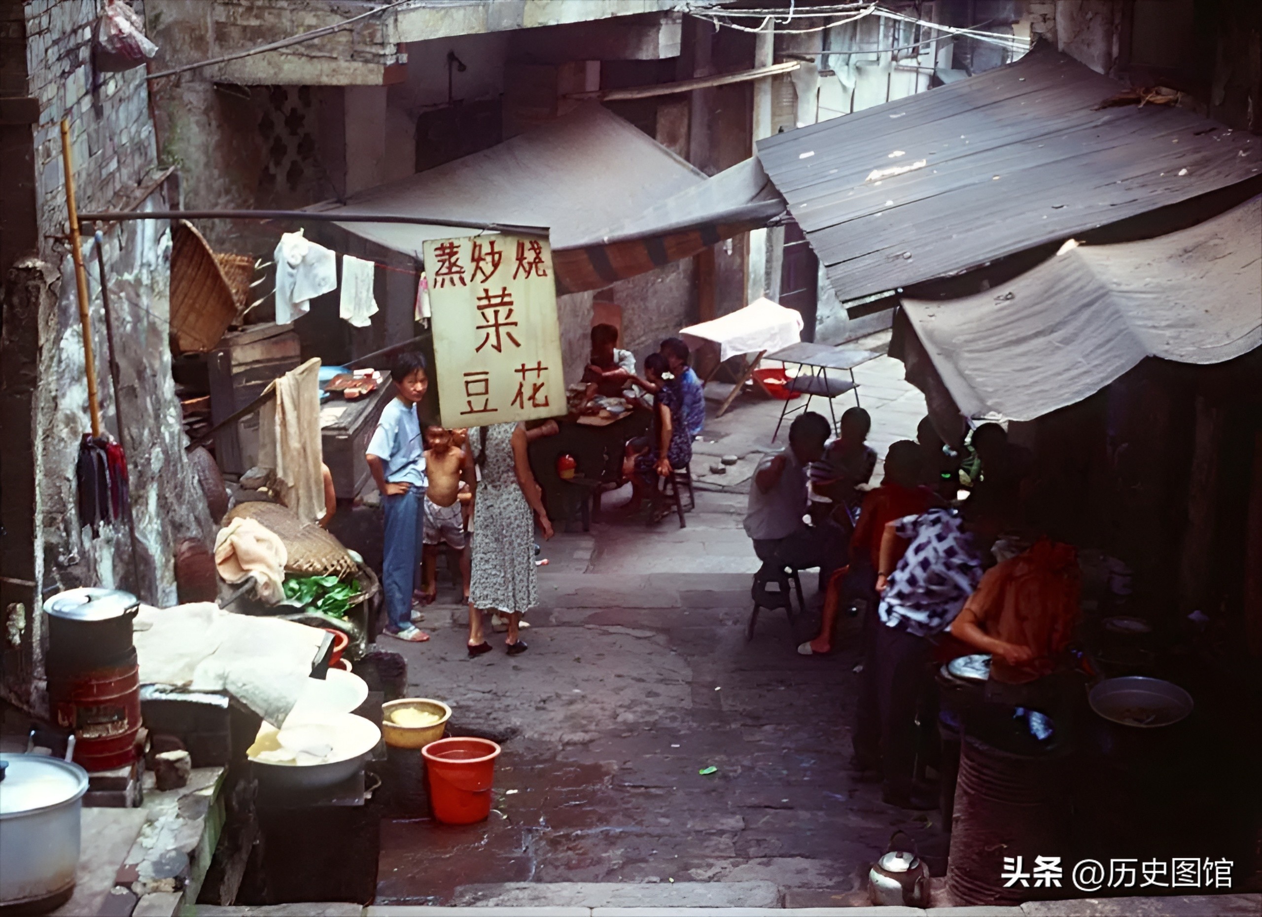 无缝不钻的小贩,是城市的生命线。这是另一条小巷子,充满了人间烟火味。路边有小吃摊。牌子上写着蒸炒烧菜和豆花。这是当地的特色美食小吃。
