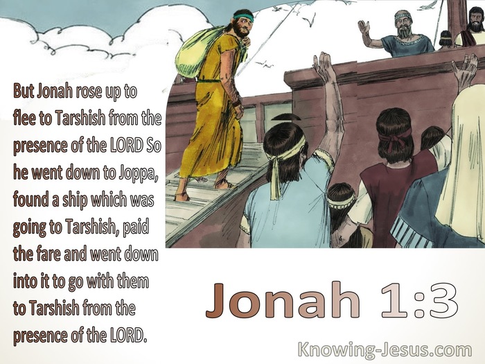 古代的航船没有固定的时间,要去哪个地方全凭运气。约拿很顺利地找到了一只要去他施的船。他想去他施,正好有个船似乎在等待着他。环境的帮助、顺境并不一定代表神的心意,只不过有一个机会让约拿逃跑。约拿作为先知,他一定对神有基本的认识。他知道这位神是全地的主宰,无处不在、无时不有,用逃避的方式,就能够躲避开吗?当然他知道这是办不到的,约拿的心中是很挣扎的,他的内心非常痛苦,他知道这样一位充满万有的神,根本无法躲避。他躲避的做法,实际上是躲避呼召,远离耶和华,甚至不愿意再作先知了。