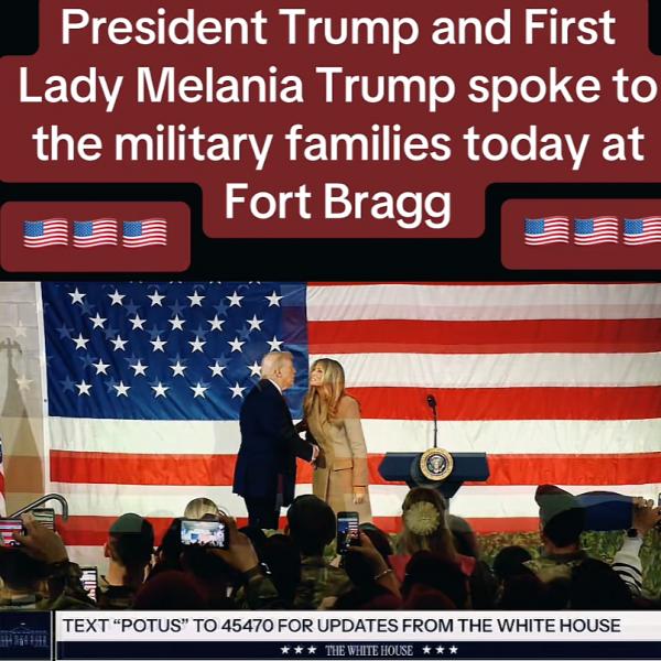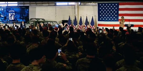 感谢你们捍卫我们的自由。今天能向布拉格堡和波普陆军机场的官兵们致辞,我深感欣喜。向我们伟大的美国武装部队致敬。你们驻守在世界各地。