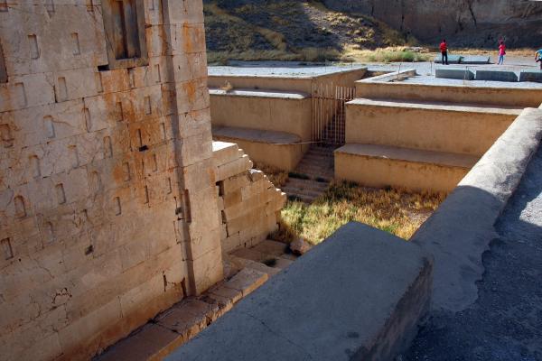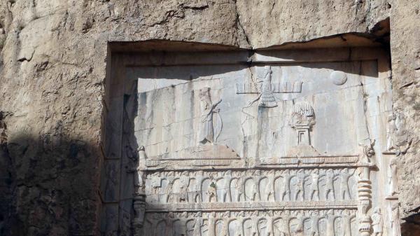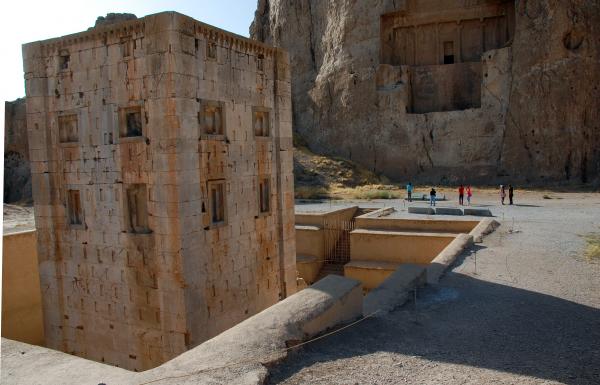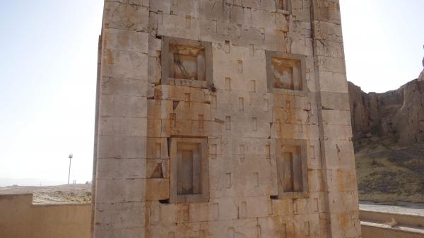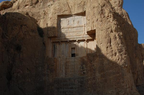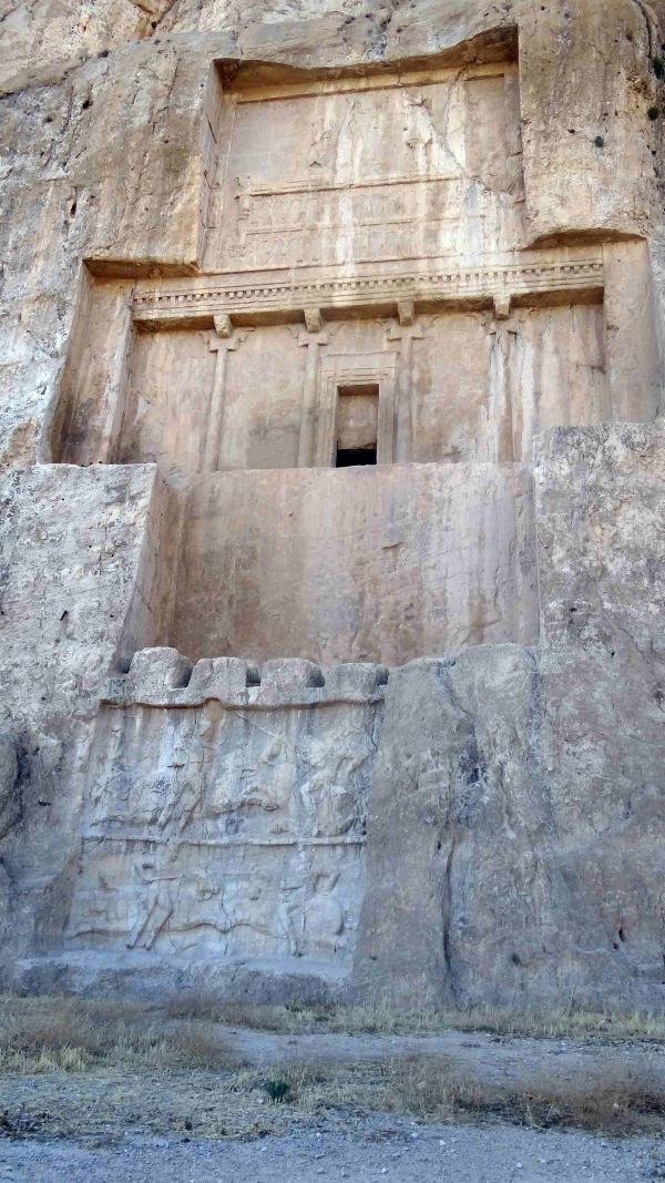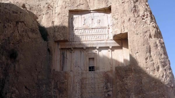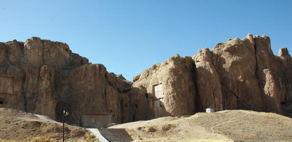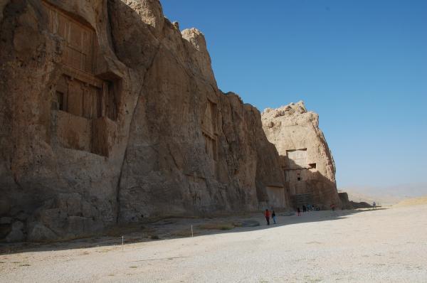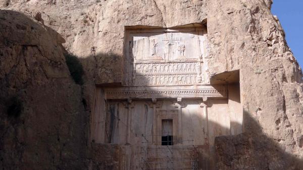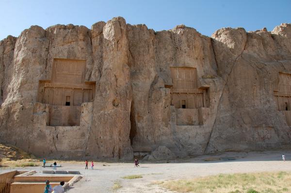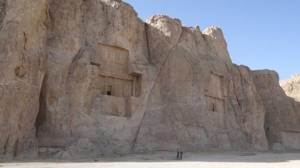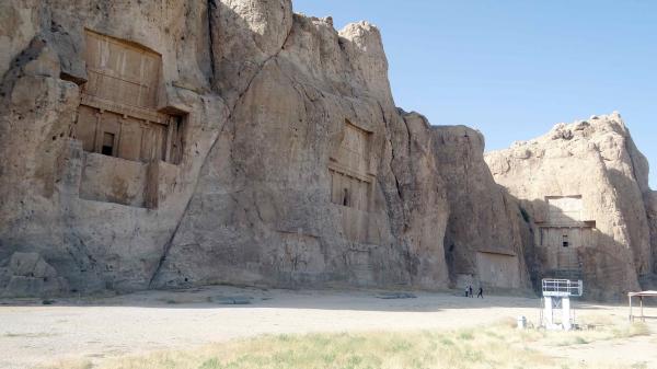 如纳克什-鲁斯塔姆距设拉子约 70 km这里是波斯帝国皇帝的帝王谷,埋葬着四位波斯帝王,包括:大流士一世、薛西斯一世、阿尔塔薛西斯一世和大流士二世。这些墓都雕刻在山岩上,还有石刻浮雕宣扬这些帝王的丰功伟业。
