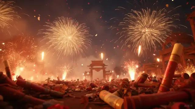 当午夜交正子时,新年钟声敲响,这是“岁之元、月之元、时之元”的“三元”时刻,是旧的一年结束,新的一年开始的重要时刻。放爆竹不仅是辞旧迎新的标志,也是人们表达喜庆心情的方式。爆竹声响彻云霄,象征着对过去一年的告别和对未来一年的美好期待。