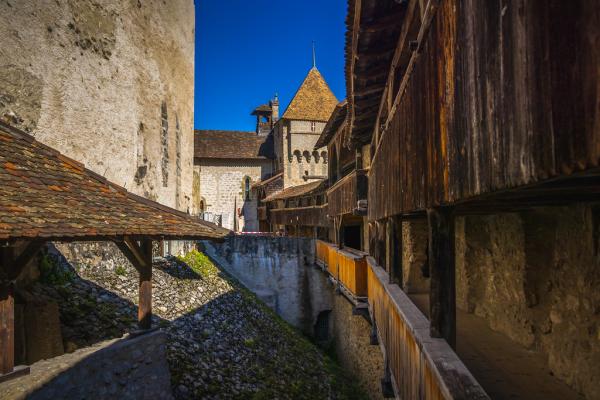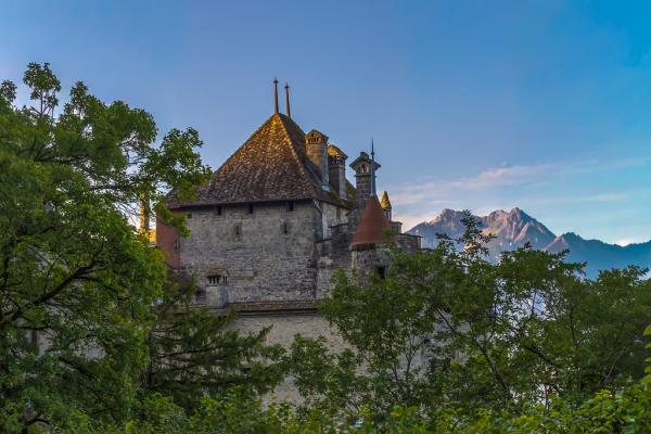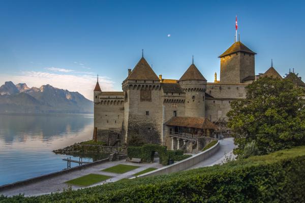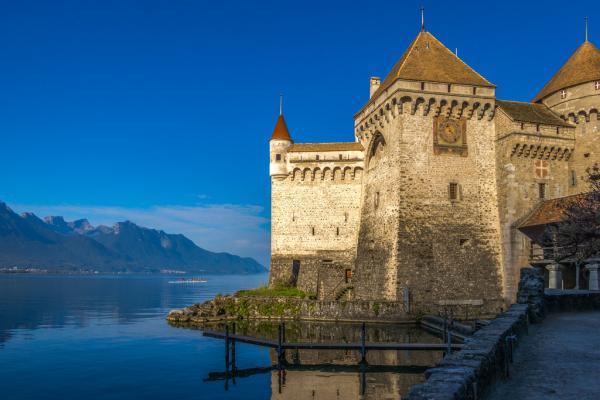 瑞士西庸城堡(Chillon Castle),城堡、湖水与清晨的光