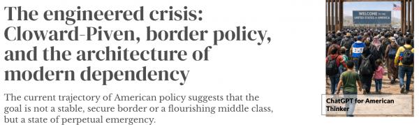 归根结底,现代对Cloward-Piven的召唤不是阴谋论——而是对结果的观察。目前美国政策的轨迹表明,目标不是稳定、安全的边境或繁荣的中产阶级,而是永久的紧急状态。在这种环境下,「公共福利」只是用来掩盖新的、依赖性政治联盟的整合的偽裝。民主党精英的支点是操纵的最后阶段:假装解决他们多年来促成的危机,所有这些都是为了保持对不断变化的国家的控制。