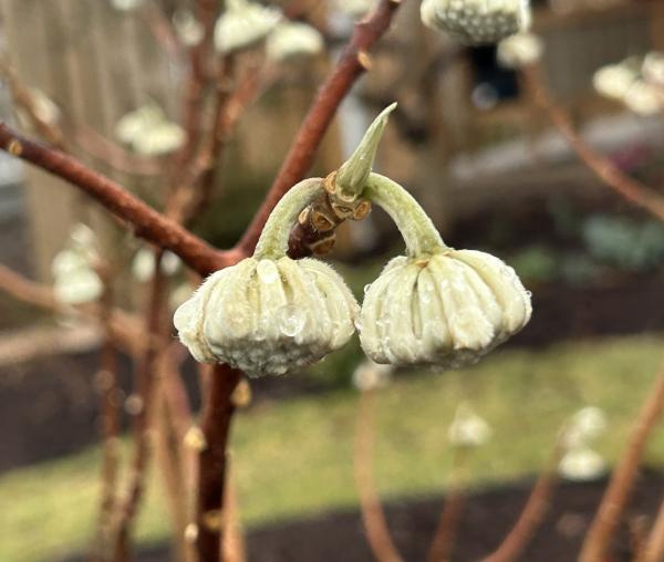结香开在光秃秃的花枝上,女主人说,你闻一闻,它很香。果然,如古代美女的香袋,淡淡清香。