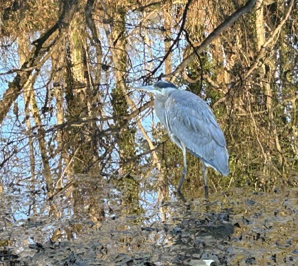雄鹰高空盘旋,一对大雁一边飞,一边哇哇地宣告:“我们恋爱啦!”三个大蓝鹭站在溪边大树的高枝上,守护窝窝与未破蛋壳的小宝宝。新春的最高峰,就是生出新生——却也藏着断裂与吞噬。见我这番领悟,大蓝鹭似乎觉得孺子可教,它站在春水中,让我尽情领略它的风采,春光屡屡流淌其上,呼唤飞翔,自由飞翔——在阴影中飞翔。
