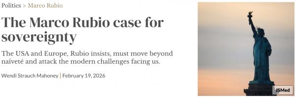 根据卢比奥的说法,美国的合作模式意味着欧洲必须在联盟内加强其主权,而不是允许其“权力被外包、限制或从属于其无法控制的系统”。