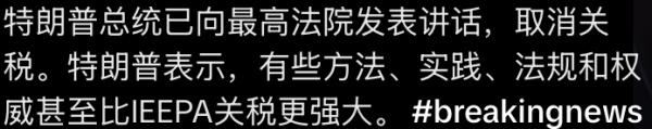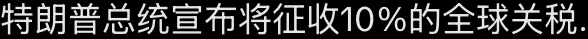 因此,立即生效,所有国家安全關稅,即第232条和現有第301条关税,仍然有效,並完全有效。 今天,我将签署一项命令,根据第122条,在已经收取的正常关税之外,征收10%的全球关税,我们还在启动几项第301条和其他调查,以保护我国免受不公平贸易行为的影响。