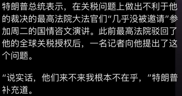 对此事做出不利裁决的最高法院大法官们,最高法院对关税的裁决令人深感失望,我为法院某些成员感到羞耻,简直无地自容,因为他们缺乏为国家做正确抉择的勇气。