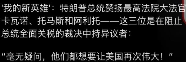 ?川普关税战受挫,怒指大法官遭X势力挟持!