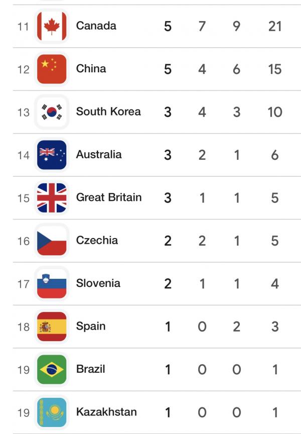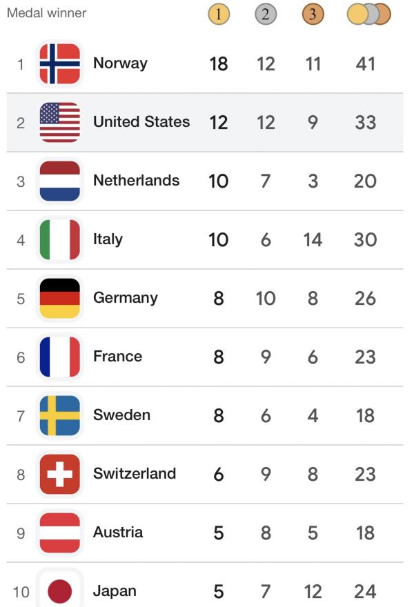 2026 米兰冬奥奨牌榜