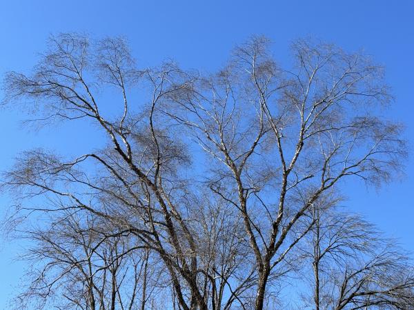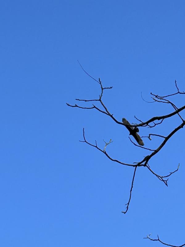 赤裸的大树干虽矗立在众树之中,但远远就会看到它,一身银白,挺身而立,成了亮眼的风景线。到分叉处,枝条向四周伸展,在空中交错,犹如抽象派的画作,却又涂上银粉,在明光中闪烁,并带着画家画不出的粗壮、粗犷与厚实。栖息大树梢的雄鹰,凝视蓝天寥廓,振翅飞翔。