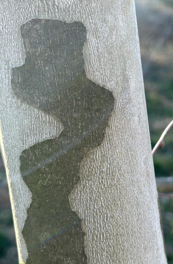 那日在绿道看一棵悬铃木悬空,离地一两尺,身高几米,疤痕绝妙。我怎么也找不到断根在哪,它就那么悬在那里,底部伸出一大块,如贵重的马靴子,画上绝美的图案。离开时我才看见,旁边还有两株很高很粗的悬铃木,一株在四五米高处有个大疤痕。原来刚才悬着的不是树,而是树杈被活活折断了。但哪怕死,也展示生命最美的一面。