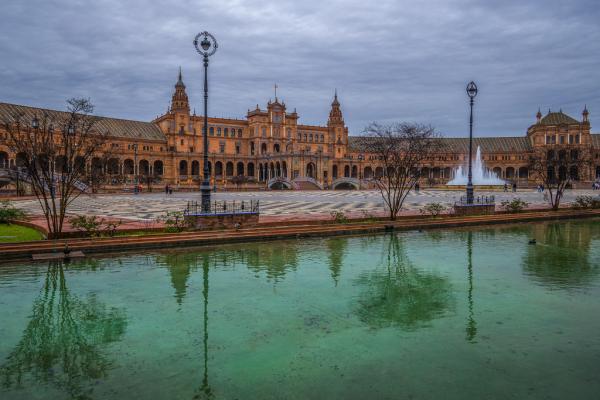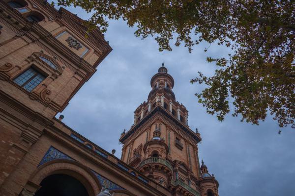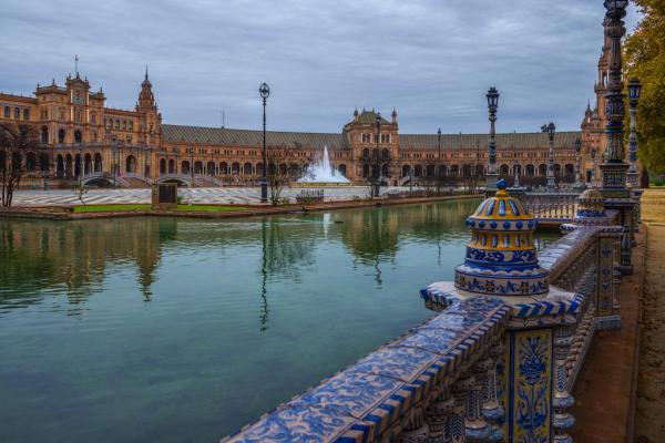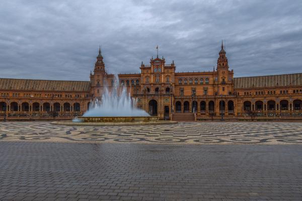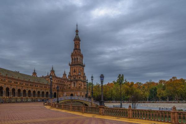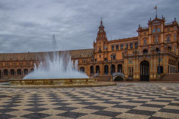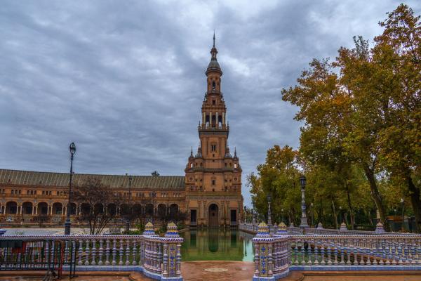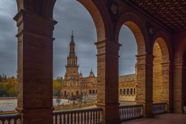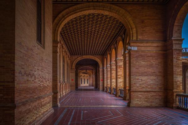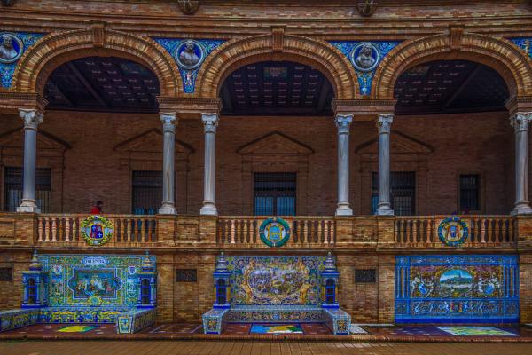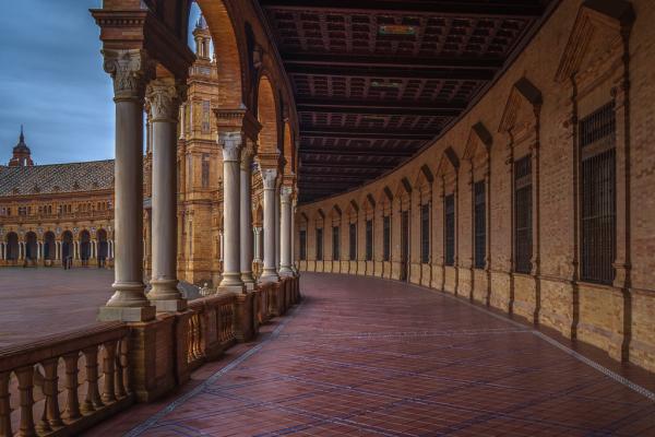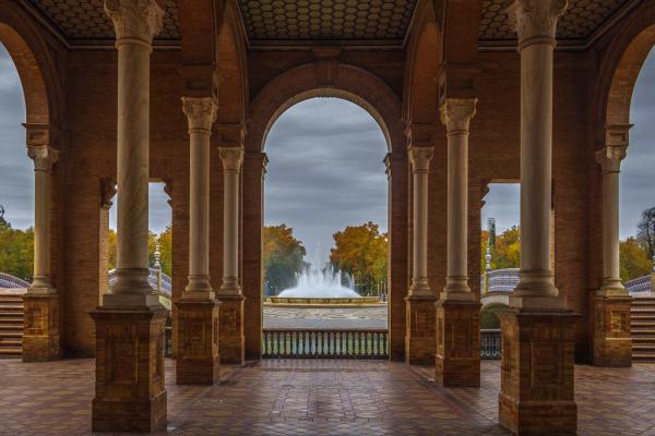 西班牙塞维利亚西班牙广场,石柱间的时空隧道