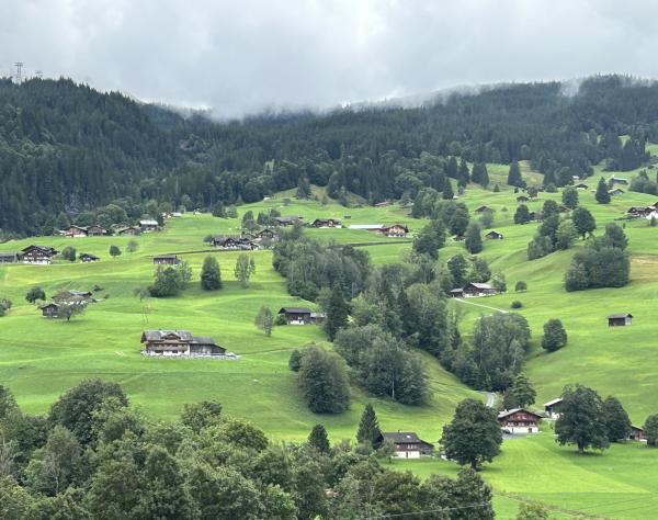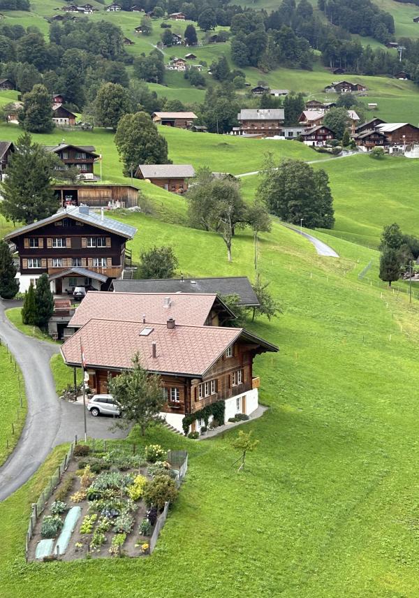 瑞士之旅结束半年了,留在心里的最强烈印象,竟是那些我不知道名字的小村庄。一次是乘坐黄金列车,一次是乘缆车上下少女峰。那些朴实的房屋和院落,就坐落在青翠草坪上,绿林间,几头牛卧在草地,一辆车停在门前,鲜花开放。泥土小路有时空无一人,有时一两人漫步。远处,奇峰清峻,白云悠长。和谐和宁静如风,清新千万里。