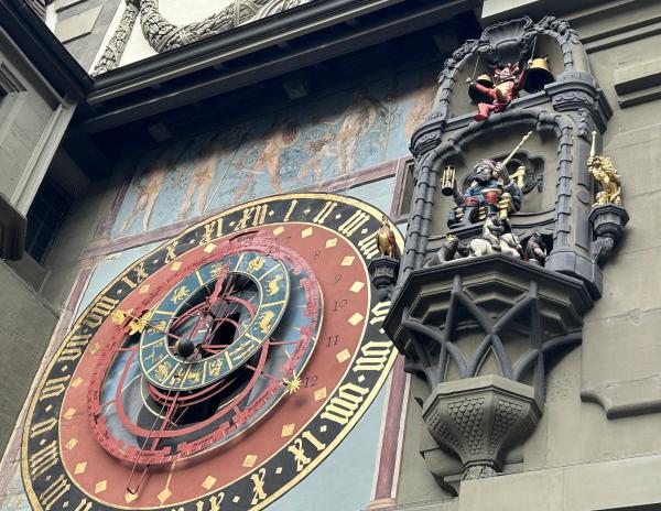 我在钟楼(Zytglogge)前停下,等十点整敲钟表演。趁还有时间,沿着小石子路慢行,两侧建筑连成一体,颇有意大利风情,却饱经几百年风雨。其中有处爱因斯坦故居,现已改成纪念馆。我没进去,却进了旁边咖啡馆,点了杯咖啡,心想:爱因斯坦当年不会也来过吧?喝完闭眼假寐片刻,看能不能蹦出点震惊世界的灵感,从心底却窜出一句话:“别装了,赶紧出去,别错过敲钟声。”