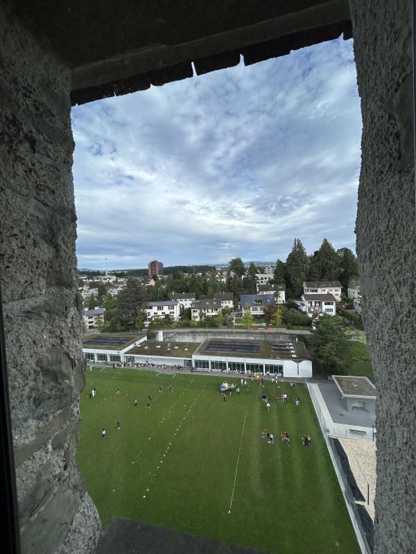 沿着桥穿过湖面,登上城楼,沿着城墙走向钟楼。没想到印象最深的,竟是墙脚下一座学校操场:许多男孩女孩俩俩搭手,蹦蹦跳跳,传来阵阵笑声、叫声。