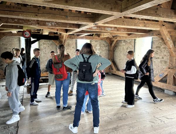 站到钟楼最上层,跟在我们后面的小学生们激动不已,嘁嘁喳喳,老师轻轻嘘了一声,他们立即安静,欣悦地看景看钟,也瞄了两眼我这个老外。一个小家伙竟用中文对我说:“你好。”