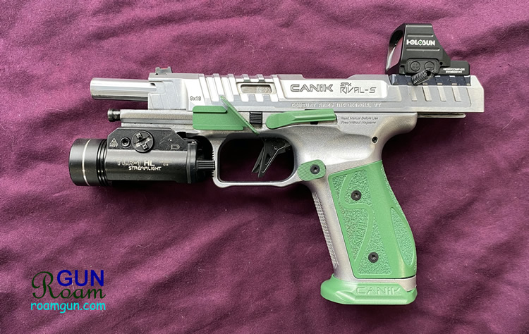 打靶的过程和结果都在视频当中,下面截取几张照片,留给不爱看视频的朋友。第一支是Canik SPx,造型最夸张,看到拇指的指托和突出的套筒拉柄,就知道已经做了最多的升级改良。这些升级已经超出了IDPA允许的范围,所以不适合随身携带,也是合情合理。只不过这是款流浪者认为最容易上手的枪。一般来说,新枪第一打都不是会很习惯或者熟练,所以效果也不会理想。但觉得这次非常不一样,不是说打得很好,但自己觉得初次体验相当不错。