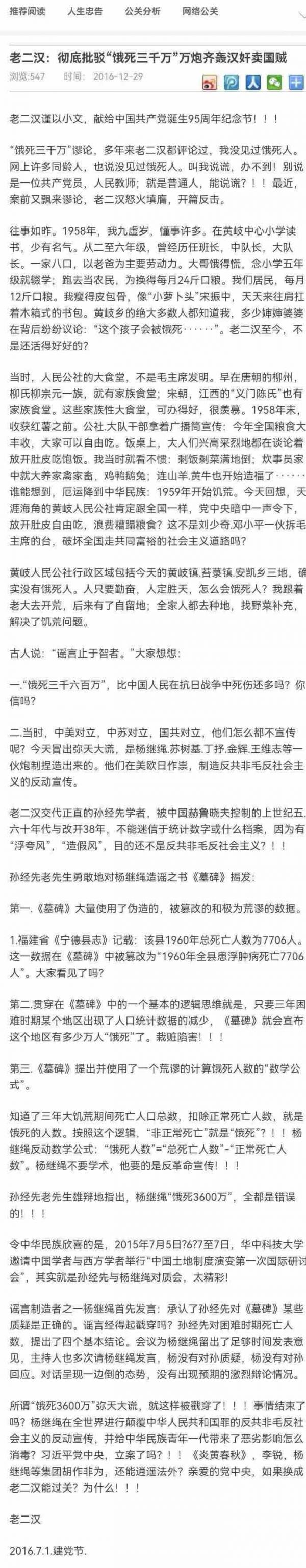 这也是为何其大陆内政治代理人的那些邓党乱邦伪共集团的那些吹鼓手们,什么杨继绳、袁隆平、莫言等之类,其鹦鹉学舌式里应外合地迎合之的可笑之处了。这不:又再次史载性客观佐证如下: