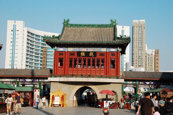 天津古文化街以展示天津传统民俗、手工艺和老字号文化而闻名,被称为“天津文化的缩影”。位置在天津市南开区东北角东门外,海河西岸,长度约687米,北起通北路,南到水阁大街,两端各有一座牌坊。整条街仿照清代民间建筑风格建造,商铺、牌匾、雕刻和彩绘都带有浓厚的传统文化气息。历史可以追溯到明清时期。当时天津是重要的漕运枢纽,大量船只在海河汇集。街区以祭祀海神妈祖的天后宫为中心形成集市。1900年八国联军入侵天津后,这一带曾遭破坏,商业逐渐衰落。直到 1980年代天津政府重新规划修复,形成今天的古文化街。古文化街景点密集:天后宫、戏楼广场、玉皇阁、通庆里等等。集中展示天津民俗和传统工艺,包括:泥人张:彩塑艺术、杨柳青年画、风筝魏,以及果仁张和崩豆张天津、桂发祥十八街麻花等传统小吃。古文化街也是天津民俗活动最集中的地方,例如:娘娘诞皇会(妈祖生日庙会)、春节庙会和年货市场。