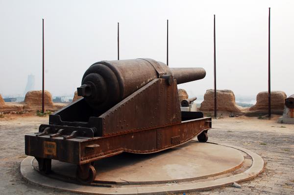 天津大沽炮台位于天津市滨海新区海河入海口,位置极其关键。外国军舰如果要进入天津、威胁北京,必须首先通过大沽口。因此大沽炮台被称为:“京津门户”,最早建立于明代。为了防御倭寇和海盗。清政府逐渐加强炮台建设,修筑多座炮台,安装大炮,构成海防体系。到19世纪中期,大沽口共有十多座炮台。大沽炮台最著名的历史事件发生在第二次鸦片战争。英法联军舰队攻打大沽口炮台。清军防御失败,列强舰队进入天津,迫使清政府签订 天津条约。1900年义和团运动,八国联军舰队6月,袭击并占领大沽炮台。这成为八国联军随后进攻天津和北京的重要一步。