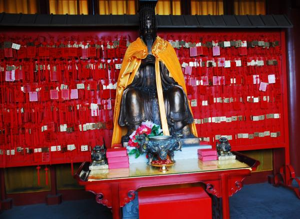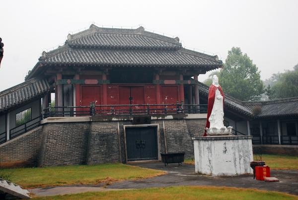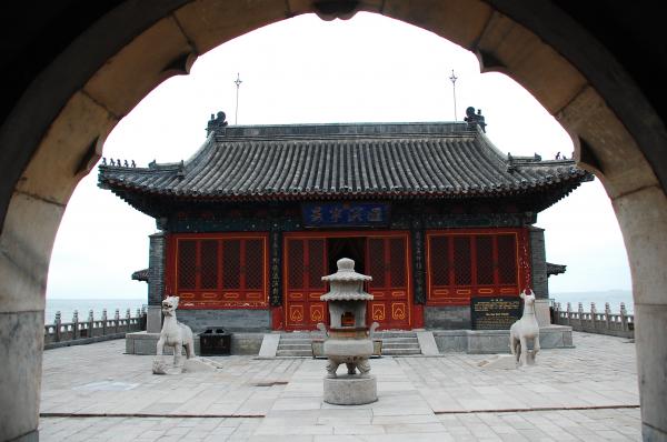 孟姜女庙位于山海关东约6公里的海边山坡上,是纪念中国古代民间传说人物孟姜女的地方。孟姜女的传说是中国最著名的民间爱情悲剧之一:秦始皇修长城,大量百姓被抓去服劳役。孟姜女新婚丈夫范喜良被抓去修长城,不久死于劳役。孟姜女千里寻夫来到长城,知丈夫已死,悲痛大哭,“哭倒长城八百里”,后来发现丈夫的尸骨。这个故事象征对暴政的控诉,对爱情与忠贞的歌颂。孟姜女传说与牛郎织女、梁山伯祝英台和白蛇传并称中国四大爱情传说。庙中有:孟姜女塑像、望夫石、孟姜女坟,站在庙前可远望 渤海海岸。