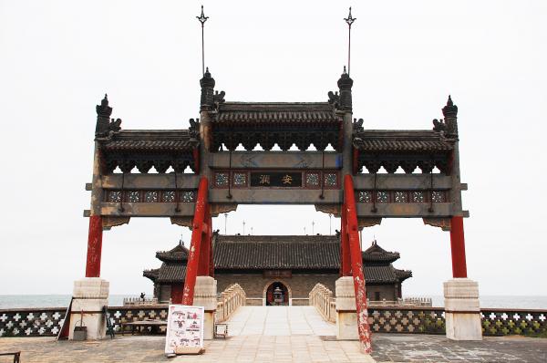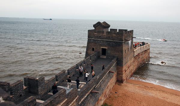 老龙头是万里长城东端入海的地方,是中国长城最具标志性的景观之一。从高处看,长城像一条巨龙向海延伸最后伸入海中的部分像龙头。始建于明朝万历年间(16世纪),由抗倭名将戚继光加固。老龙头景区包括:澄海楼(海边城楼)、入海石城、海神庙、靖卤台。长城直接延伸进海水中几十米,非常壮观。这里是长城东端起点,明朝海防与陆防结合的重要工程。因此有句话:“万里长城起于老龙头”。