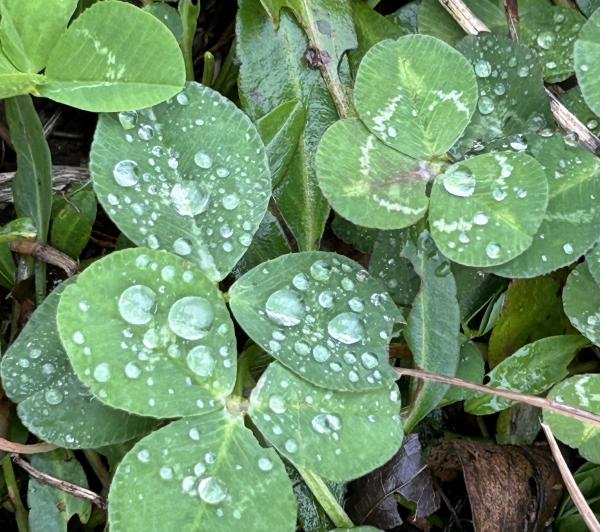 最美的白三叶草往往在一洼水面下,密密麻麻,一片叶子如一个小小的碗,盛着一滴水。可惜,怎么也拍不清楚,只好拍地面上的,那洁白的水滴,在绿叶陪衬下,格外清澈,清秀。