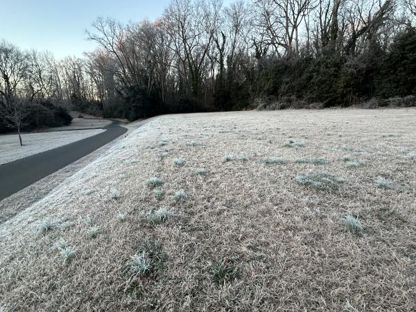 确定了,它们叫野蒜(Allium vineale)。其实,它们才是小糖溪绿道旁最早的春色,早在寒冬季节,它们就从地面上冒出来了,一撮一撮的,一拃多高,圆柱形,中间空空,如同吸管。在焦黄的枯草地面,这团团春色分外珍贵。
