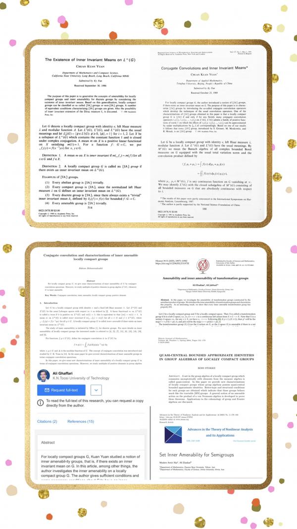 “我就是论文中提到的 Kuan Yuan,不过数学同行们大都称我为 C. K. Yuan。”