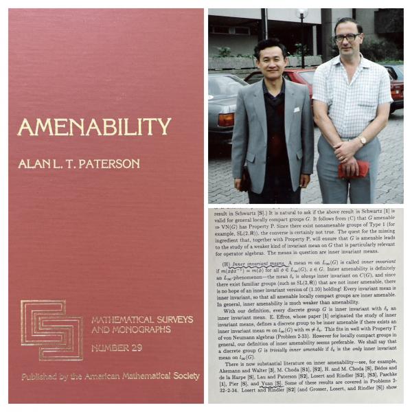 年轻时,我受到樊畿与阿克曼(C. Akemann)两位恩师的并肩指导,在非线性分析、拓扑群及算子代数方面打下基础,并受鼓励跨界闯进 “拓扑群均质性”领域。为研究冯诺伊曼代数,我把前辈EG Effros 教授在离散群上的“内均质性”,推广到了一般局部紧致拓扑群;并随之引入了“共轭内卷算子”。