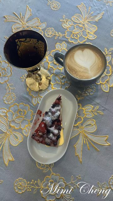 女店员站在吧台后,眉眼清秀,笑容温柔,像从老电影里走出来的人物。我买了一块蛋糕,梨子和老师各自点了一杯咖啡。那些寻常的食物,在镜头里忽然有了意义——它们不再只是被消耗的存在,而是被凝视、被安排、被赋予结构与光影的“主角”。