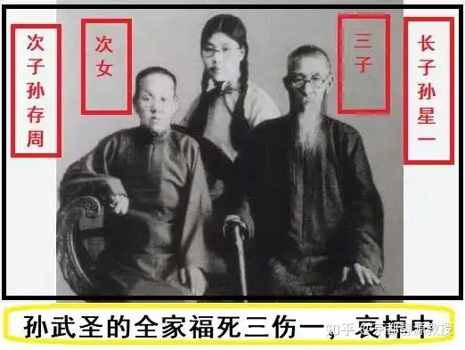 自称是什么武圣,一般人以为他就一儿一女。一女孙剑云尽人皆知。一儿就是孙存周,据说武功盖世。可是孙门弟子们和信徒们却想尽办法掩盖孙存周比武时被人打瞎一只眼睛这个事实。今天我还想说得是:其实孙禄堂共有三个儿子,两个女儿。结果最小的一儿一女,在三岁前就不幸病故。你孙禄堂不是武圣吗?怎么生下来得一儿一女不到三岁就病故了呢?他们难道没有遗传你得武圣体质和基因?一般不练武的平民百姓家的孩子也不会夭折比例这样大吧?你自己顶着武圣头衔,却先夭折了一儿一女,解释不通吧。