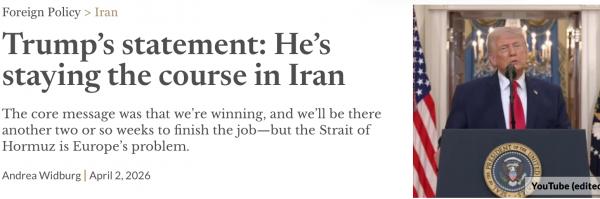 特朗普的声明:他在伊朗坚持路线的核心信息是,我們正在獲勝,我們將再呆兩週左右才能完成這項工作——但霍爾木茲海峽是歐洲的問題