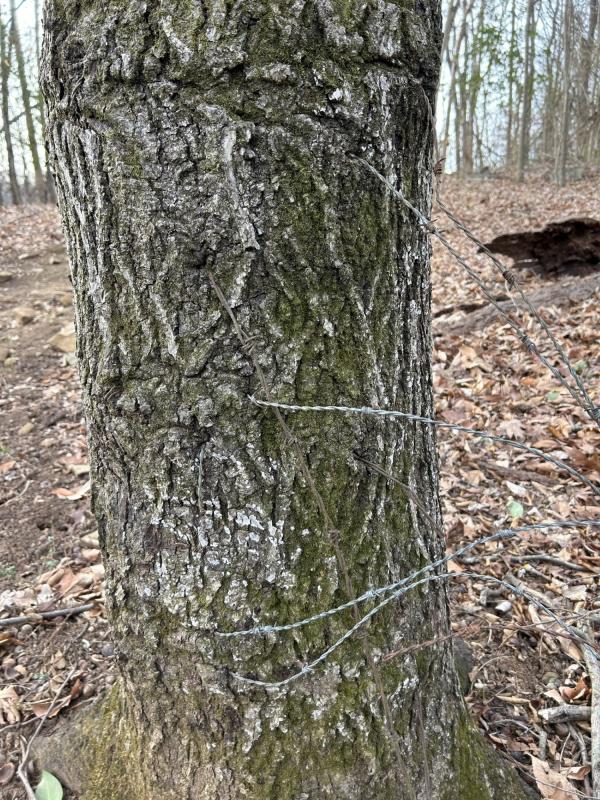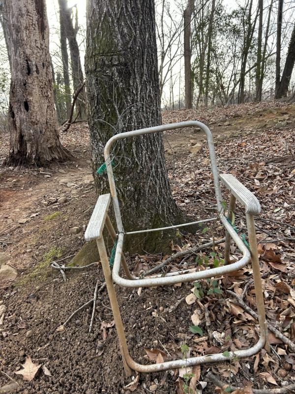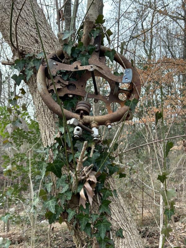 一道自行车印,是谁在何日上山?又是谁在树下放了一个彩陶,一女一男都带着高帽。拴在树干上的空椅子锈了,铁丝已经嵌入到树干里面。又是谁?是何年?