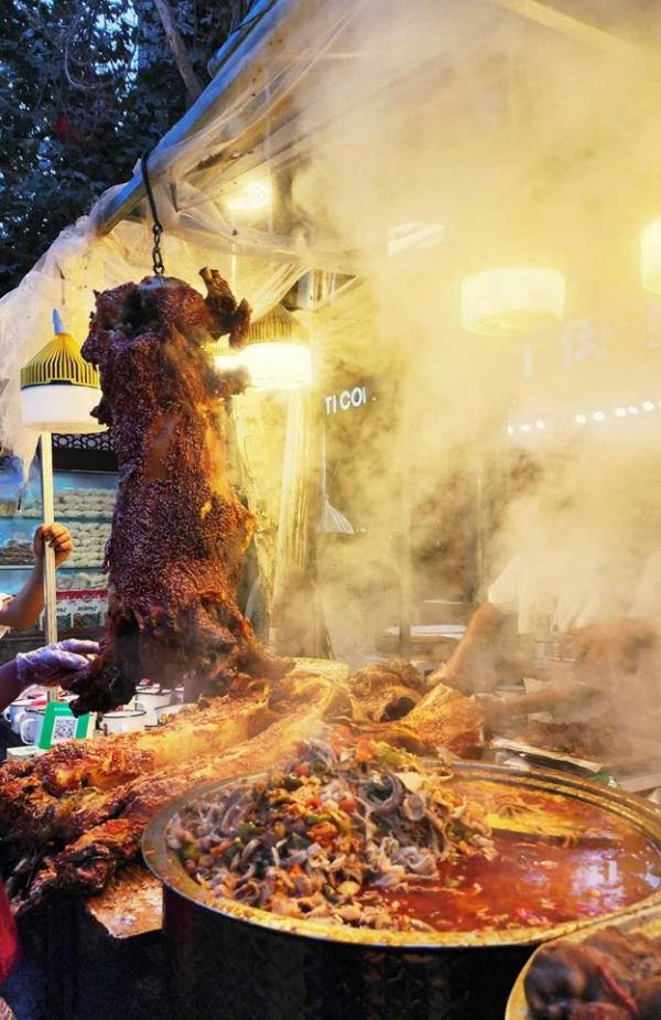 喀什美食街,我们没吃过肚包肉,尝试才知道根本咬不动.