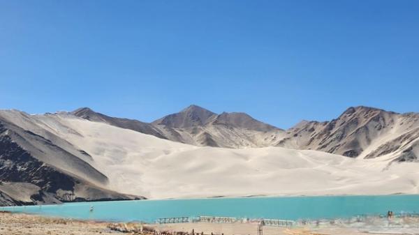 白沙湖海拔3300多米,是帕米尔高原上的沙漠湖泊,景色奇特壮美。